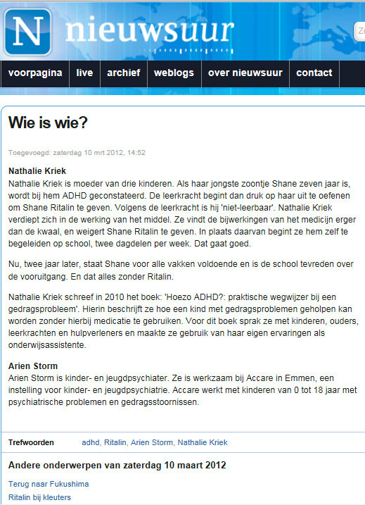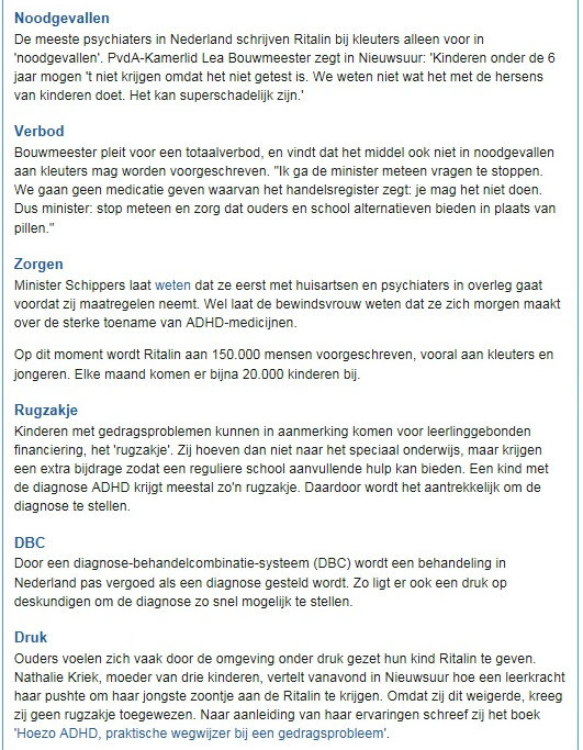I previously wrote the article below for Brainquest in response to my book 'Hoezo ADHD?', which won the award for most inspiring book in the national category in 2010. As a result, I was asked to collaborate before -and behind the scenes on the Zembla documentary 'The ADHD Hype' and the episode 'Toddlers on Ritalin' of Nieuwsuur.
