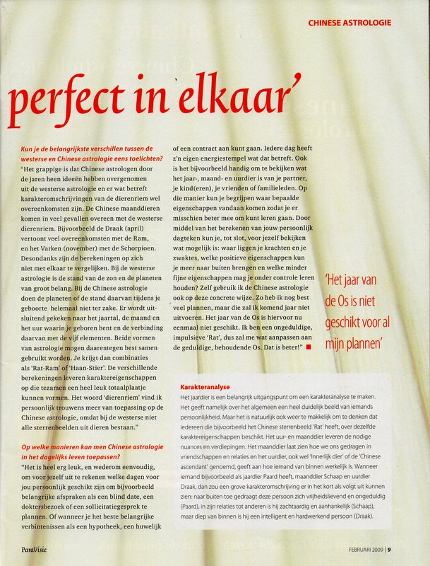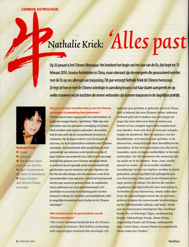 Featured interview for ParaVisie on Chinese astrology, plus the Chinese annual horoscope for the year of the Ox.