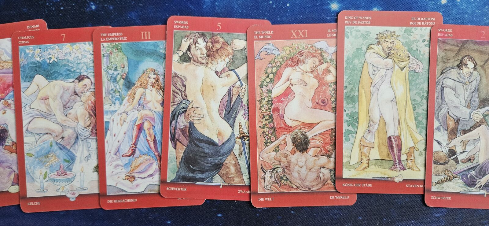 Are there any erotic tarot cards? Yes indeed! Only, no online card readings of them could be found so far.