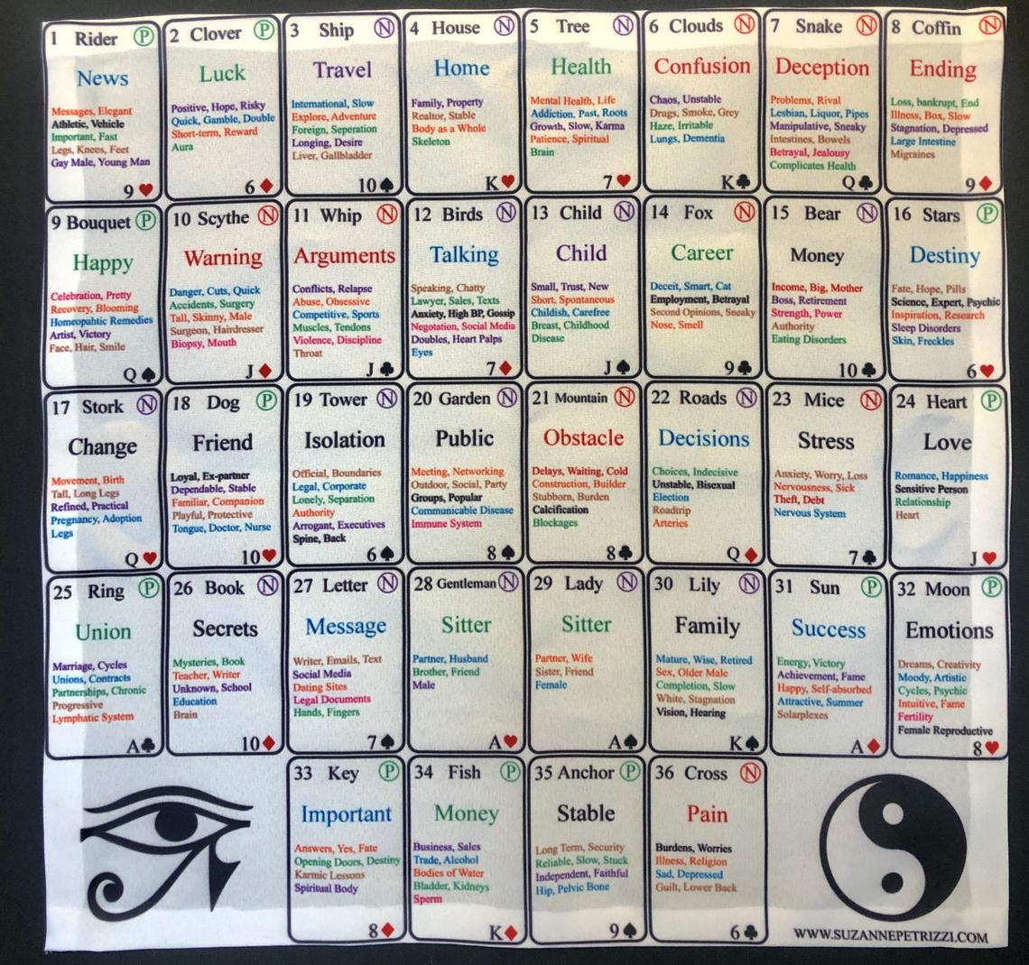 Sommigen noemen het Lenormand Huizensysteem ‘de Grand Tableau legging’ maar dit is een heel ander soort reading.